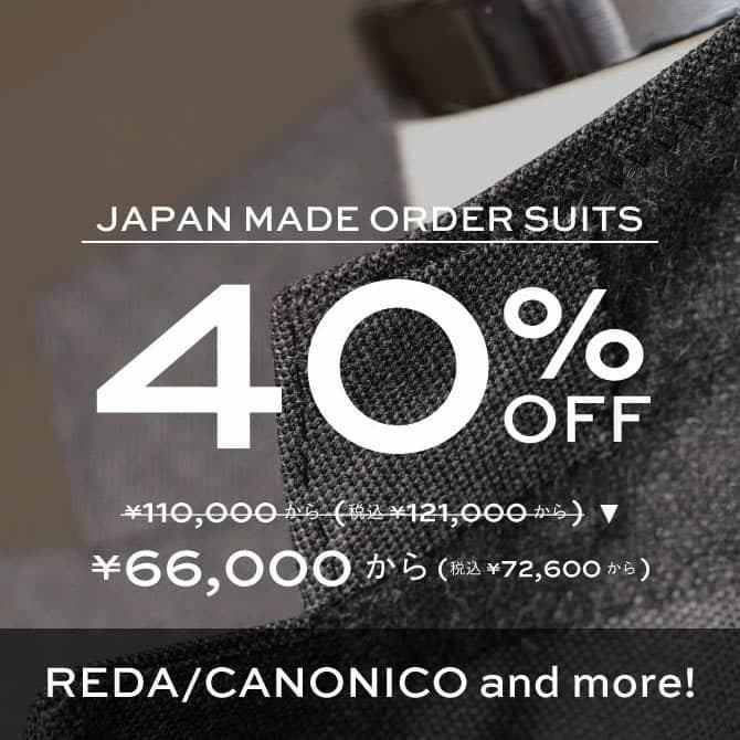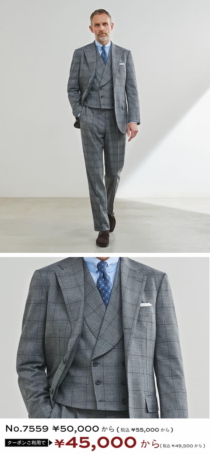 KASHIYAMAでは、通常 ¥44,550〜のスリーピーススーツが20%OFFの¥35,640〜でオーダー可能。