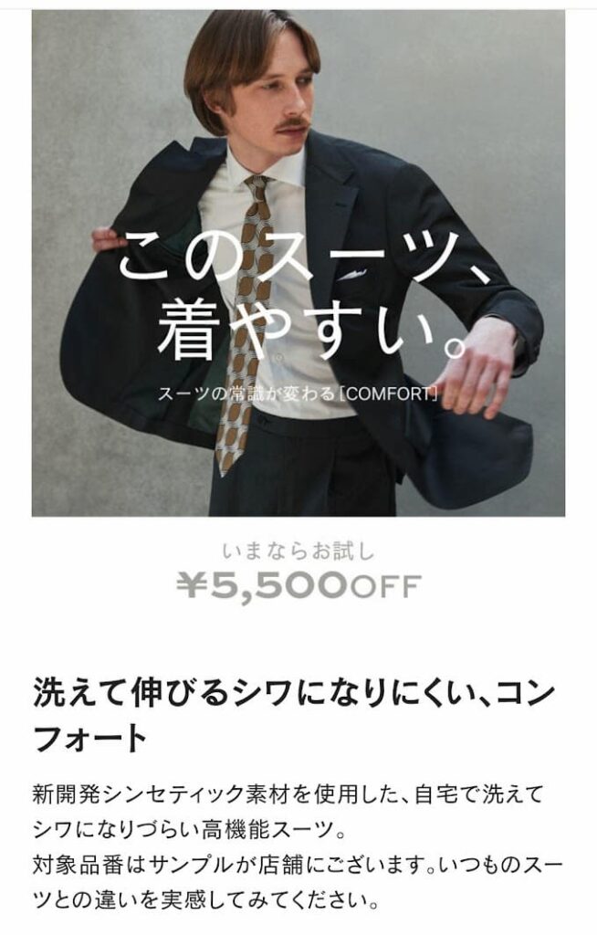 さらに、自宅で洗える高機能素材や、こだわりの国内縫製スーツも20%OFF!