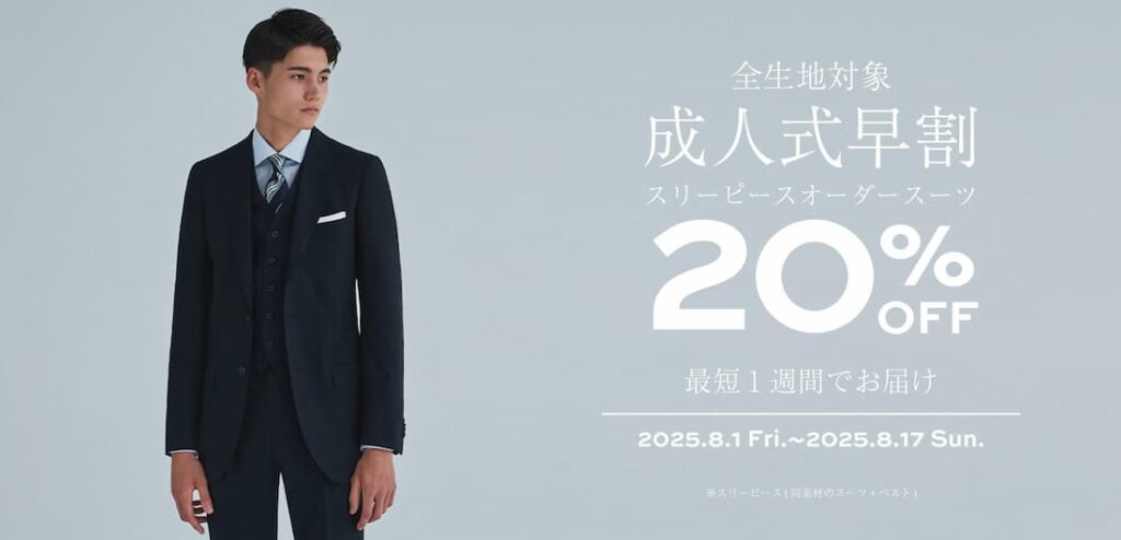 初回割引や学割、アウトレット生地の特典など、幅広いキャンペーンが揃っているため、自分のスタイルや予算にぴったりの一着がきっと見つかるはず。