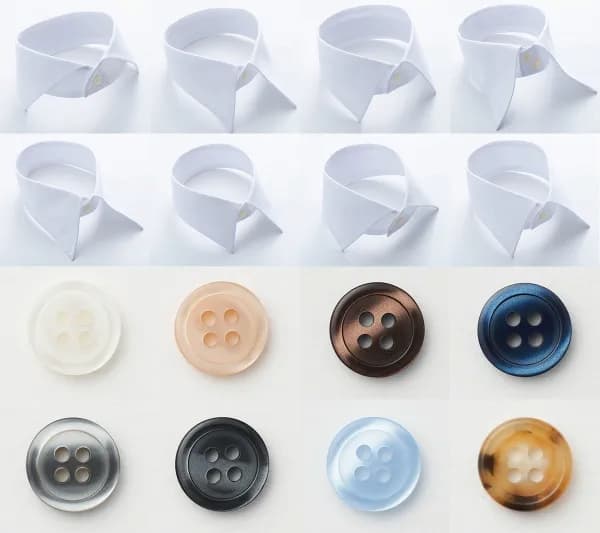 - ボタンの色や素材を変更(シンプルな白から高級感のある貝ボタンまで)