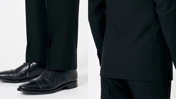 FABRIC TOKYOの礼服・喪服は、ビジネススーツとは異なる漆黒の深い黒・オーダーメイドのフィット感・フォーマルに適したシンプルなデザインが特徴。