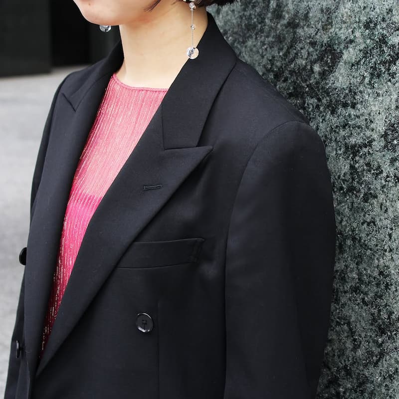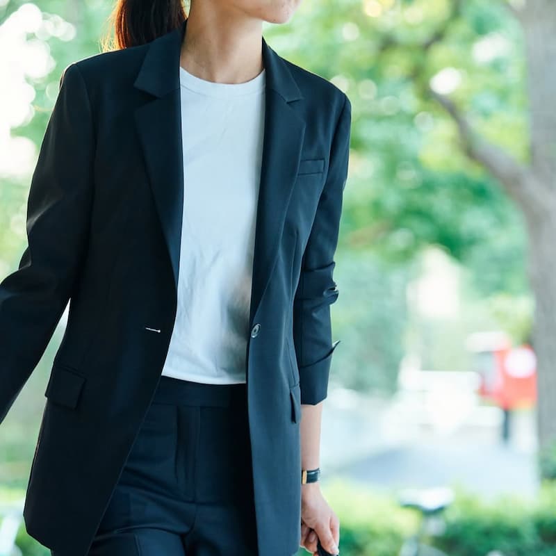 例えば、ジャケットは程よくウエストラインを絞ることでスタイルがよく見えつつも、ピタッとしすぎないバランスに。