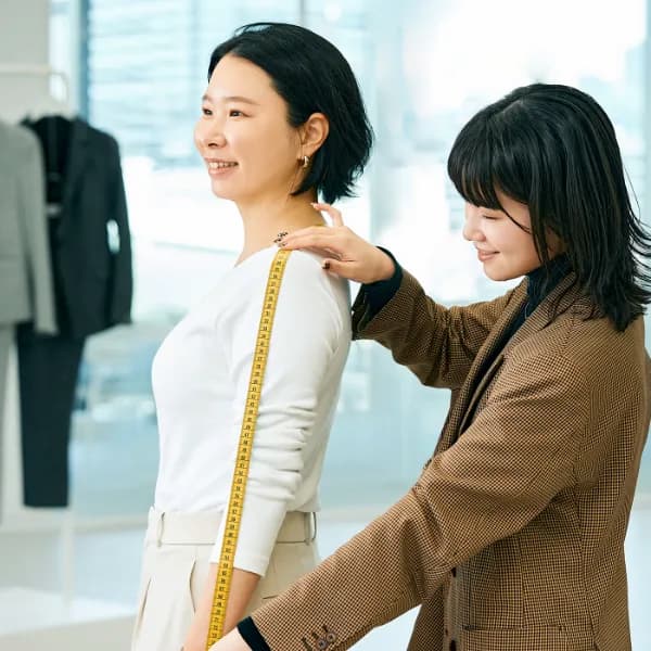 単にサイズを測るだけでなく、体型やライフスタイルに合わせた提案をしてくれるため、「自分に似合うスーツが分からない」という初心者でも安心。