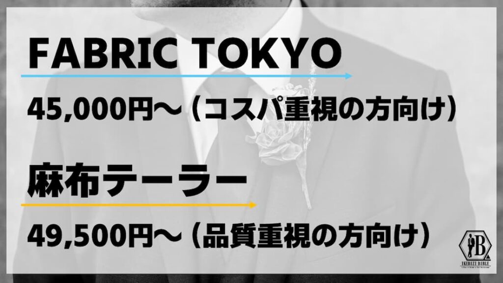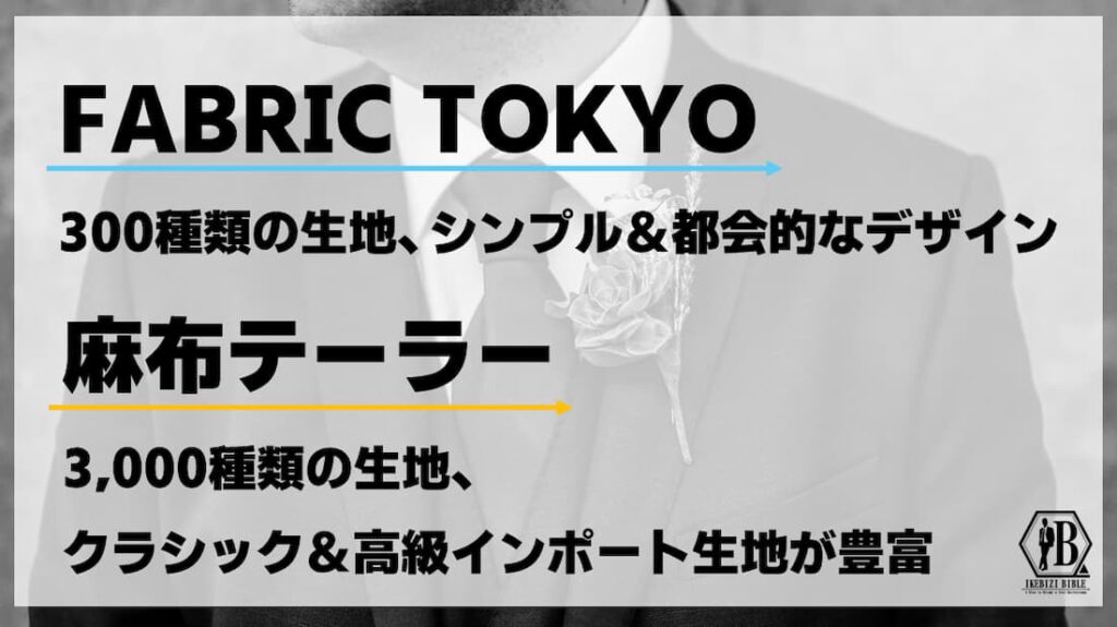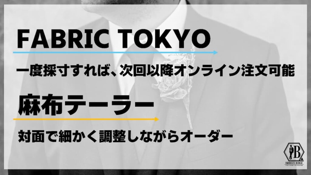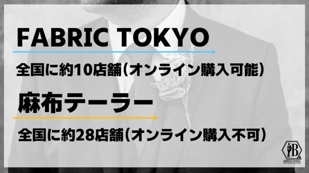 | 公式サイト | https://fabric-tokyo.com/ | https://www.azabutailor.com/ |