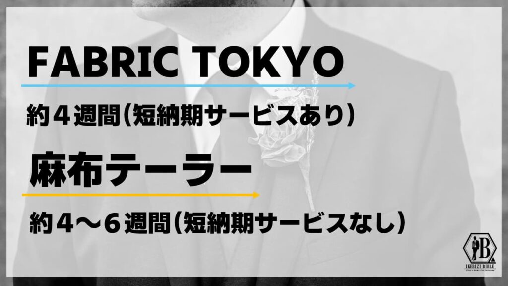 FABRIC TOKYOと麻布テーラーでは納期に違いがあり、スピードを重視するか、じっくり仕立てるかで選び方が変わります。