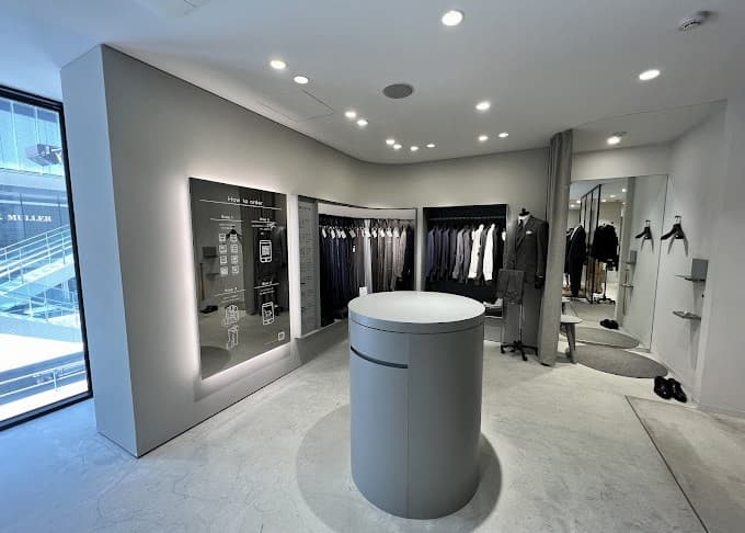 明るく開放的な店内でオーダースーツやオーダーシャツを選べます。