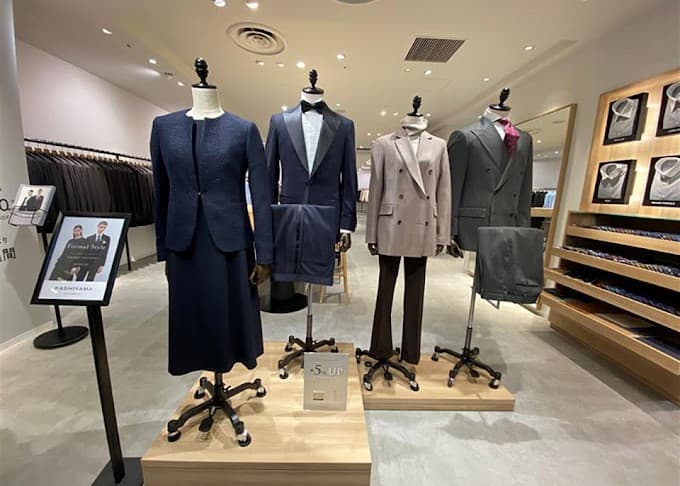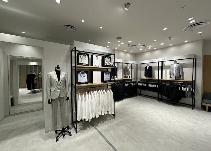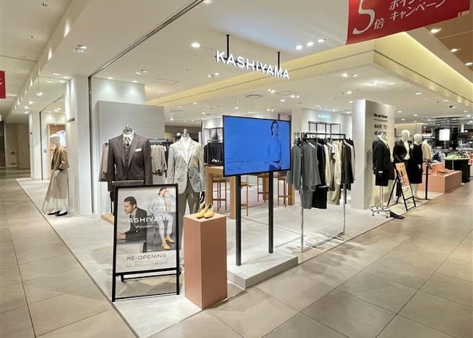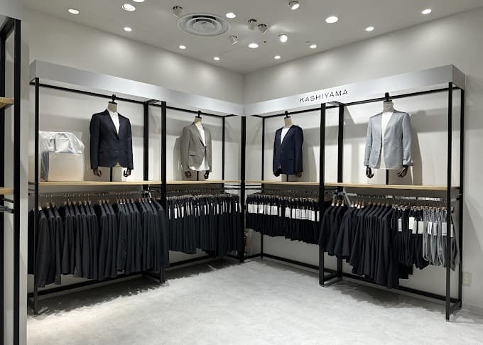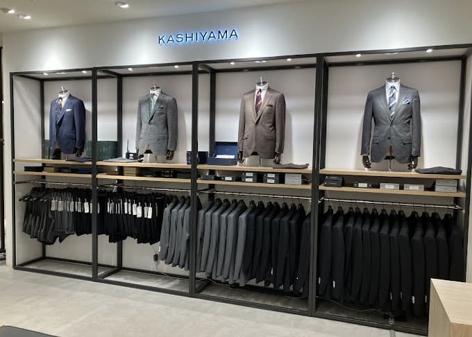 カシヤマ ルクアイーレ店は、スーツだけでなく、スマートカジュアルやアウトドア、スポーツまでカバーする新業態のショップ。