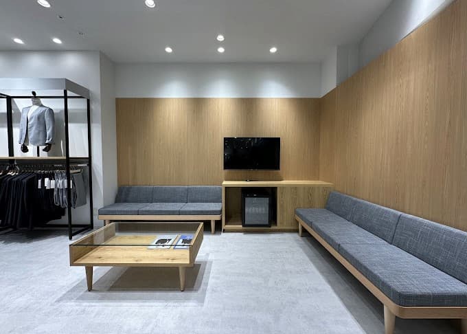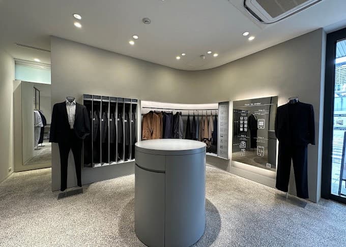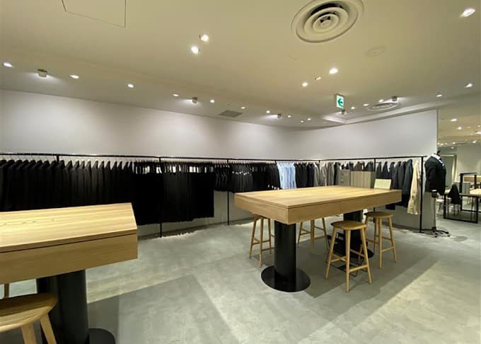 広くて開放的な店内でオーダースーツやオーダーシャツを選べます。