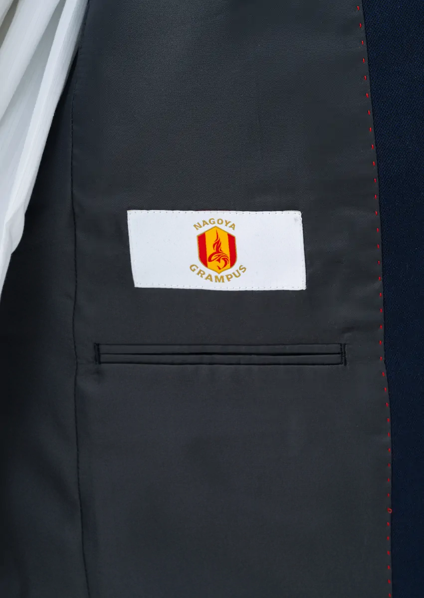 チームカラーを取り入れたデザインで、試合の日もビジネスシーンも、さりげなく名古屋グランパスエイト愛を纏える一着に。