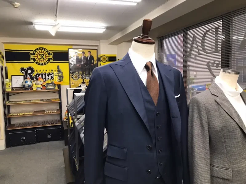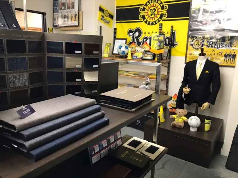 さらに、Jリーグ・柏レイソルのオフィシャル店舗 でもあり、選手と同じモデルのスーツやネクタイもオーダー可能。