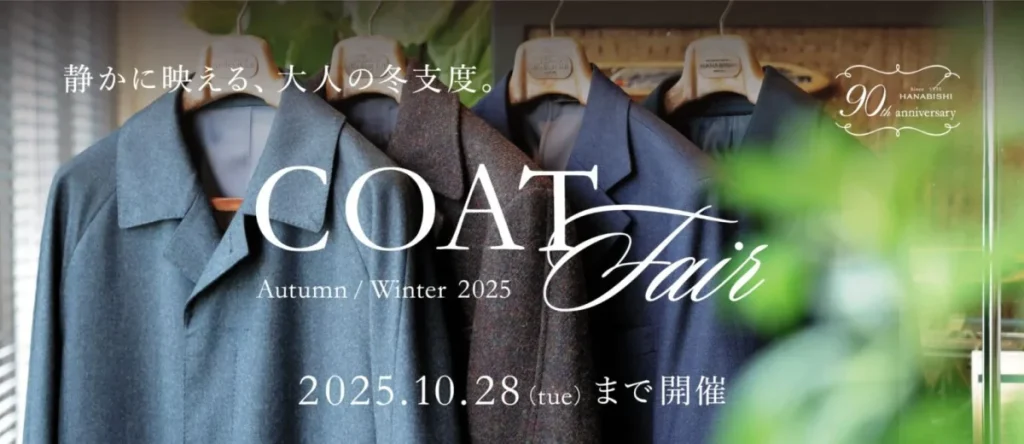 HANABISHIでは、2025年8月22日(金)~10月28日(土)まで「2025 Autumn/Winter COAT FAIR」を開催中!