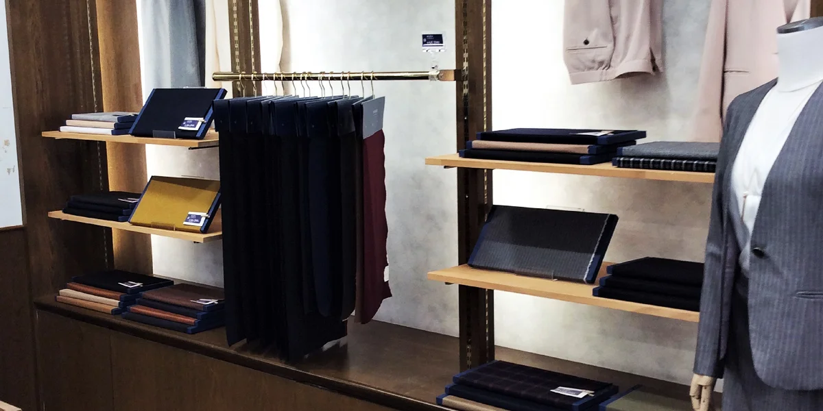 落ち着いた店内には豊富な生地が揃い、自分だけの一着を丁寧にサポートしてくれるスタッフが常駐。