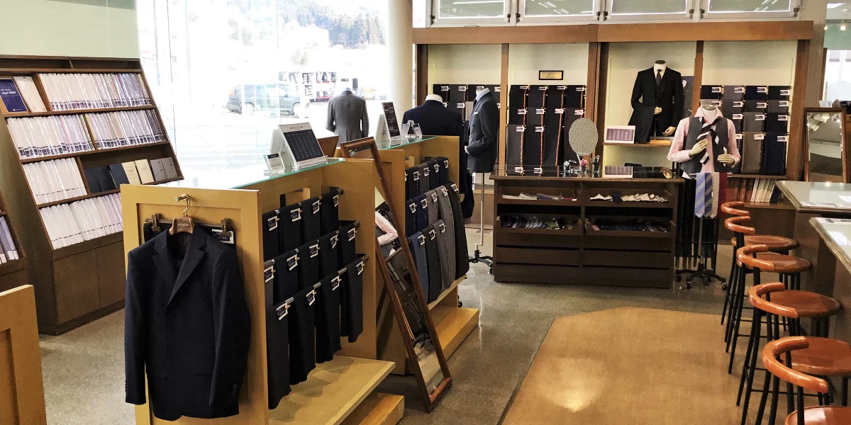 | 取扱い商品 | オーダースーツ / オーダージャケット / オーダーシャツ / フォーマルオーダースーツ(冠婚葬祭用) / リクルートスーツ(就活スーツ) / オーダーパンツ・スカート / ネクタイ・チーフ / ベルト / ギフト券 |
