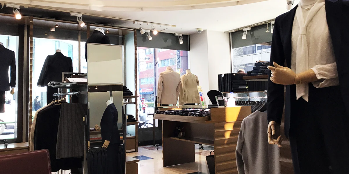 | 取扱い商品 | オーダースーツ / オーダージャケット / オーダーシャツ / フォーマルオーダースーツ(冠婚葬祭用) / リクルートスーツ(就活スーツ) / オーダーパンツ・スカート / ネクタイ・チーフ / ベルト / ギフト券 |