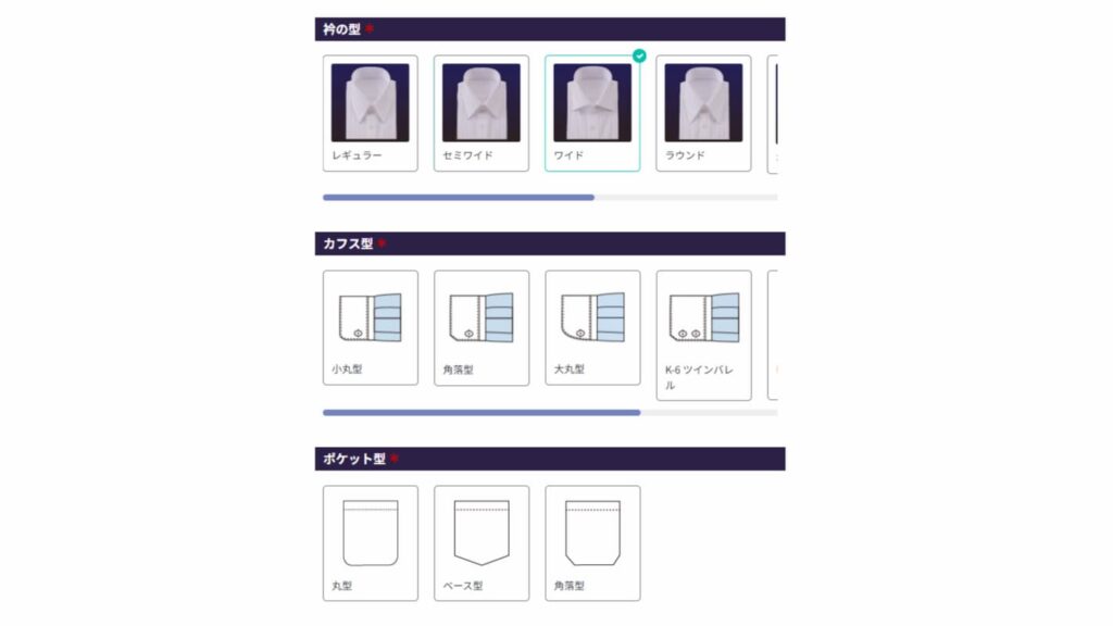 襟の形やカフス、ポケット、ボタンなど細かい部分まで選べるのがSADAのオーダーシャツ。