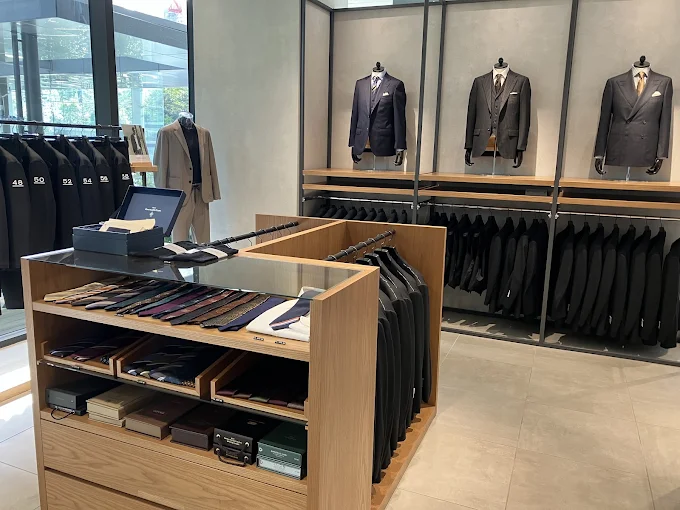 KASHIYAMA 虎ノ門ヒルズ店は、東京のビジネスの中心地に位置し、洗練された空間でオーダースーツを提供しています。