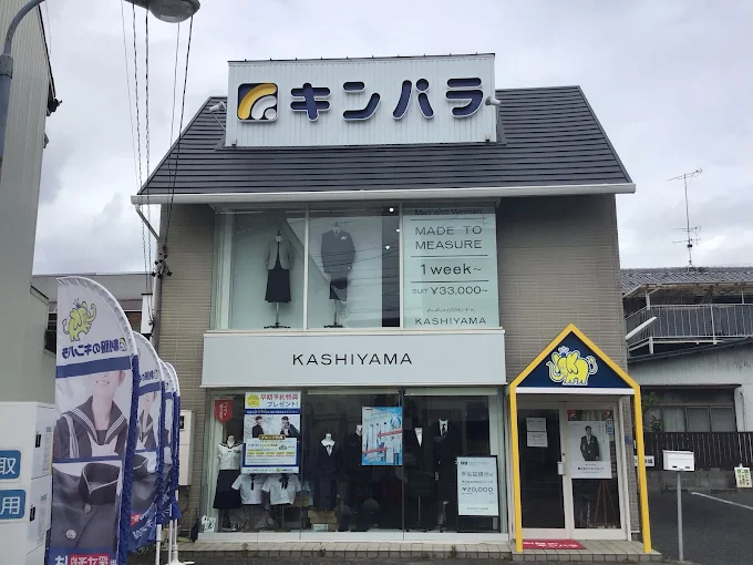 KASHIYAMA 浜松キンパラ店は、国道152号線沿いにある「制服のキンパラ浜松」内にあり、駐車場完備で車でのアクセスも快適。