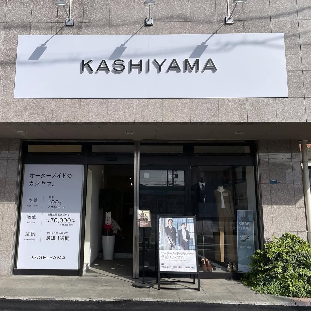 KASHIYAMA 四日市店は、近鉄四日市駅から徒歩7分、鵜の森公園近くに位置する人気のオーダースーツ専門店です。
