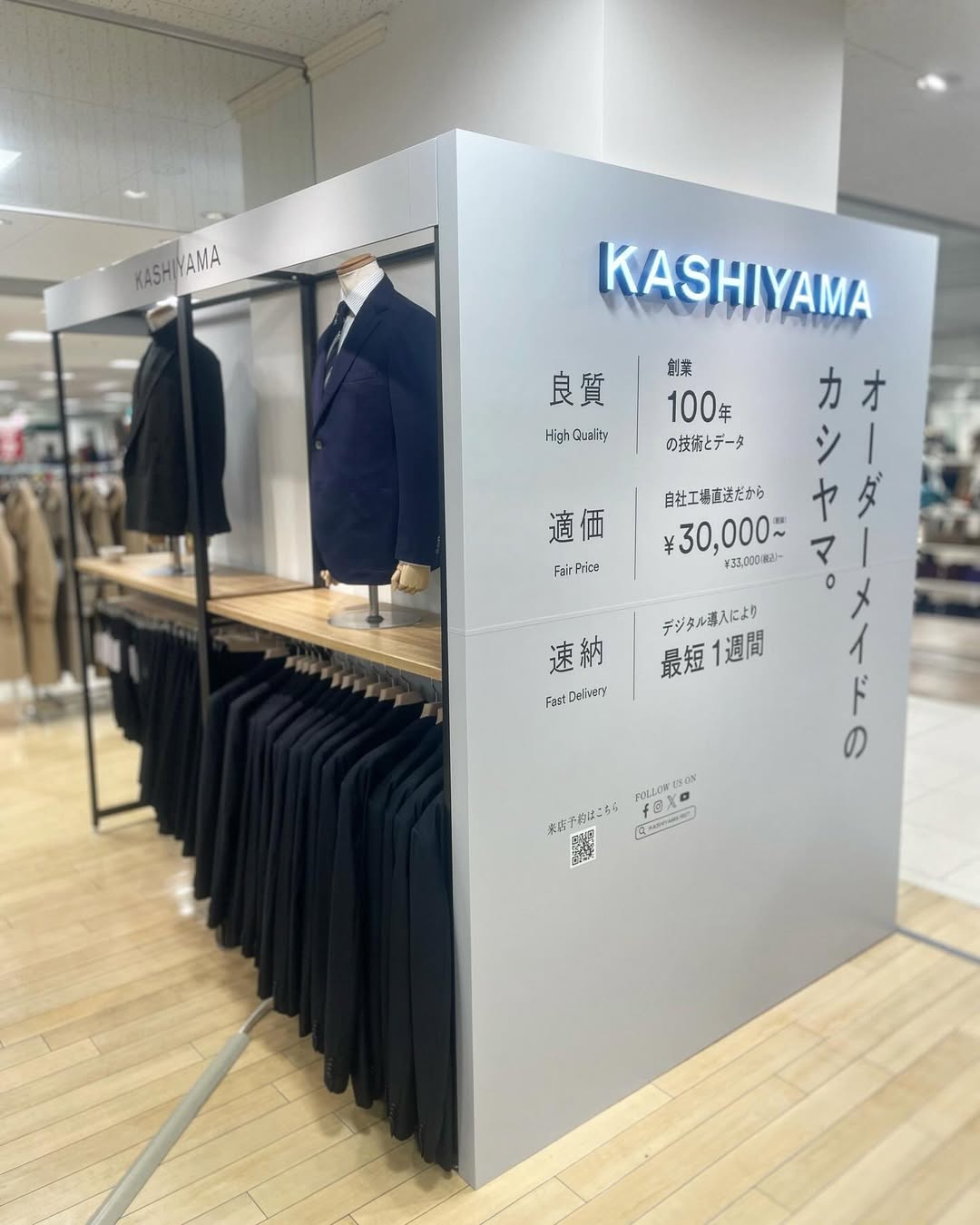 KASHIYAMA 近鉄百貨店和歌山店は、JR和歌山駅すぐというアクセス抜群の立地にあるオーダースーツ専門店。