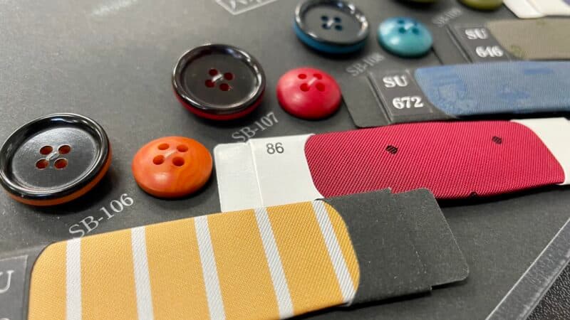 オプションは高級ボタンや裏地、折り目加工など多彩で、より自分らしい一着に仕上げられます。