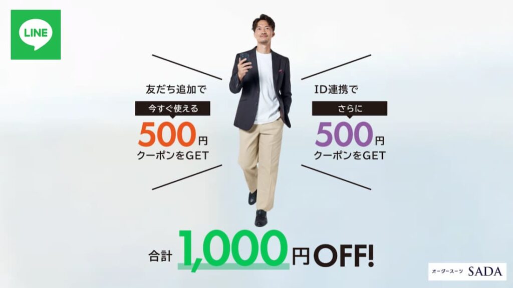 SADAのLINE公式アカウントを友達追加するだけで、500円OFFのクーポンがもらえます。