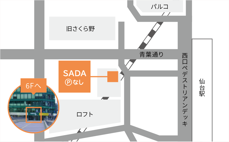 SADA 仙台駅前店は、仙台駅から徒歩1分の好立地で、東北全域から多くのお客様が訪れる人気店。