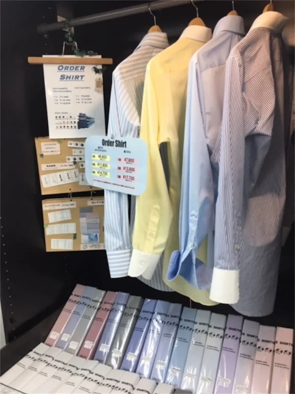 | 取扱い商品 | オーダースーツ オーダーシャツ ネクタイなど |
