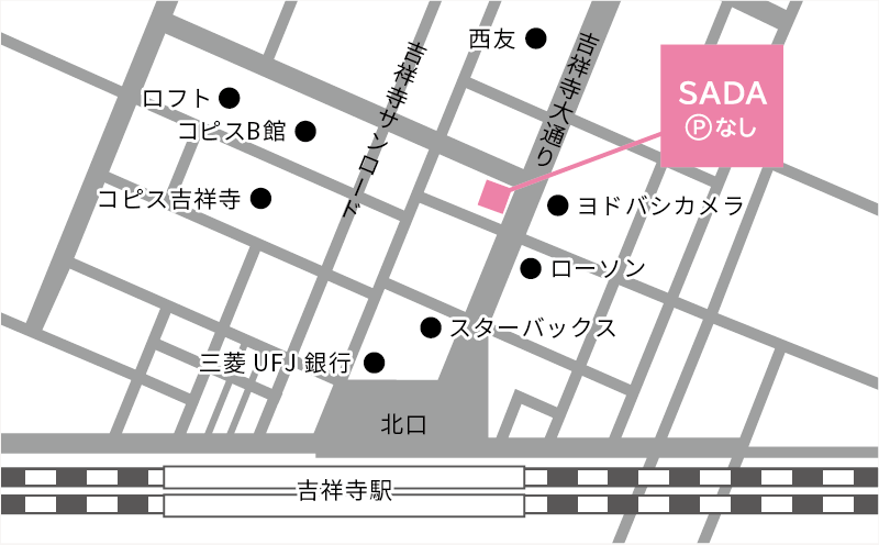 SADA 吉祥寺店は、駅近でアクセスが良く、ショッピングの合間にも立ち寄りやすい便利な立地が魅力。
