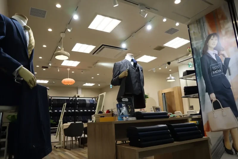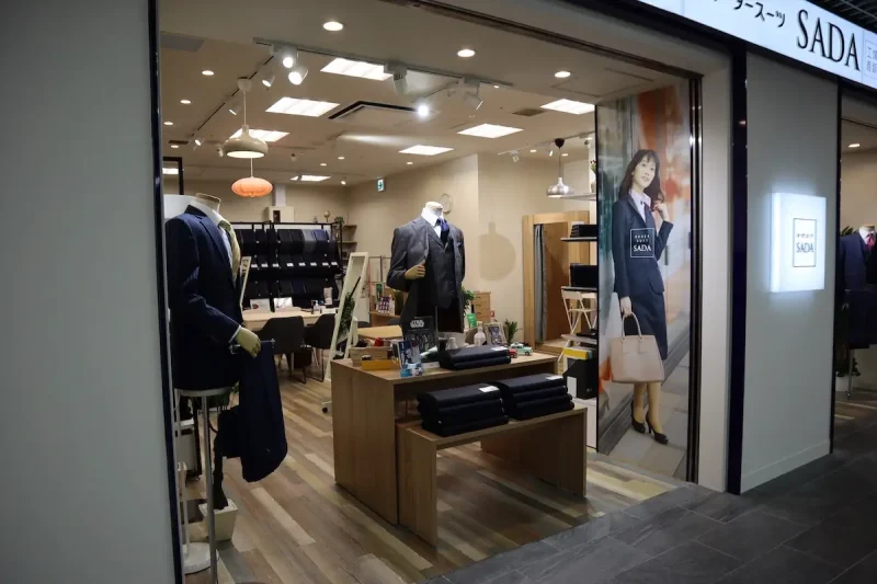 SADA 川崎アゼリア店は、駅直結の地下街にあり、雨の日でも通いやすい便利なオーダースーツ専門店。