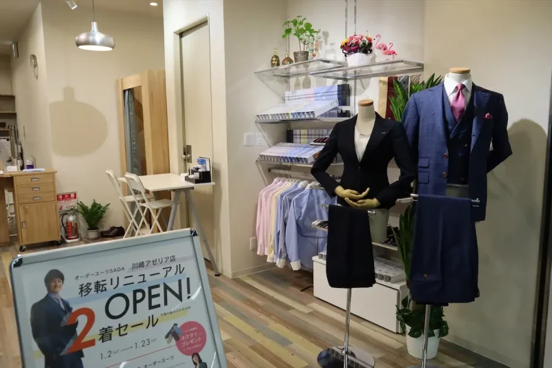 SADA 川崎アゼリア店は、丁寧な接客で定評があるオーダースーツ専門店。