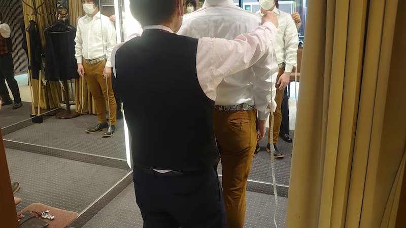 一方でフィッターは、体のクセや姿勢、袖丈の左右差などを正確に把握し、ミリ単位で調整された1着を実現します。