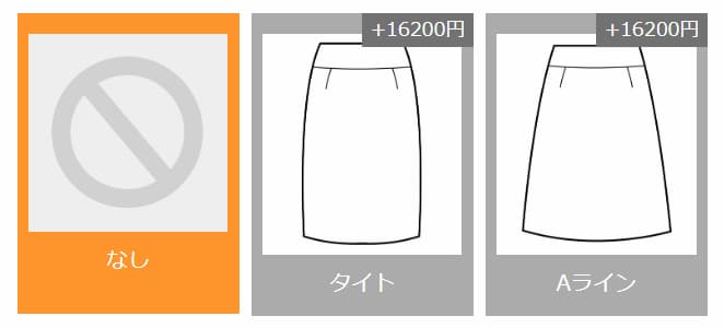 | スカート | 9,800円~ | 上品な女性らしさを演出 体型に合わせた一着でスタイルUP |