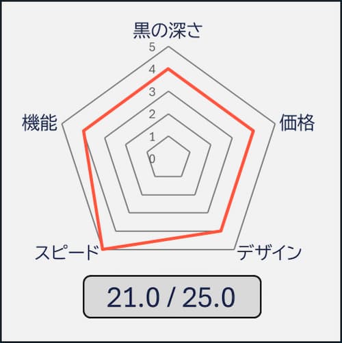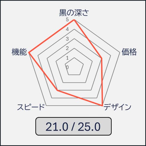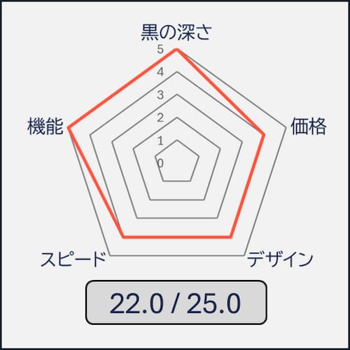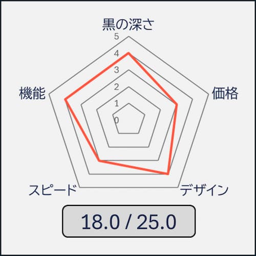 - ナノブラック加工で漆黒度が非常に高く、見た目のフォーマル感がダントツ