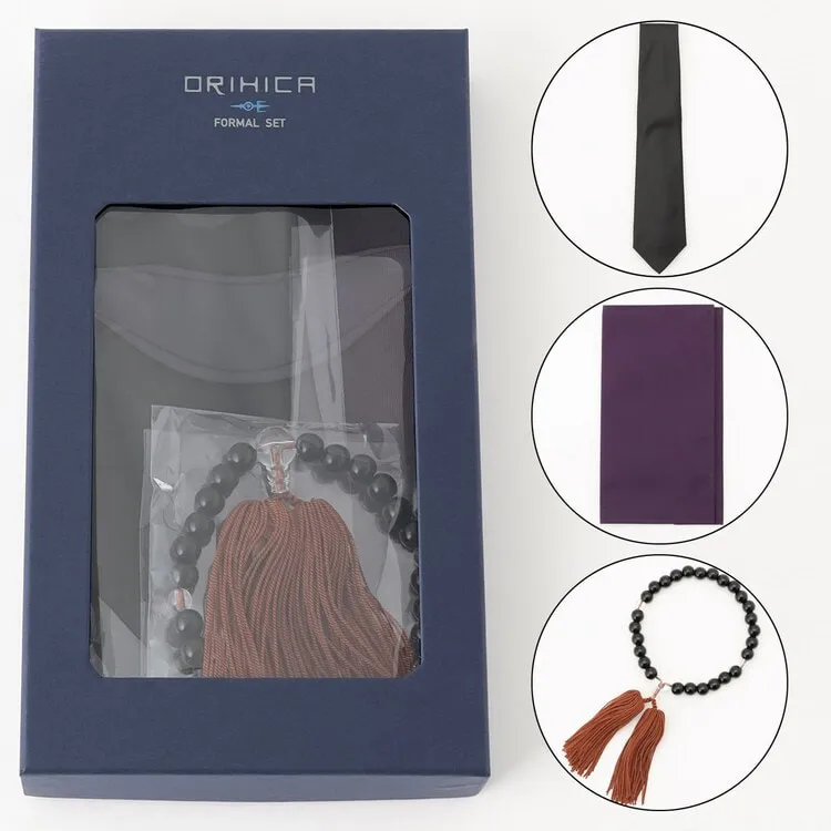 黒繻子ネクタイ・袱紗・数珠がセットになった弔問用3点セット。