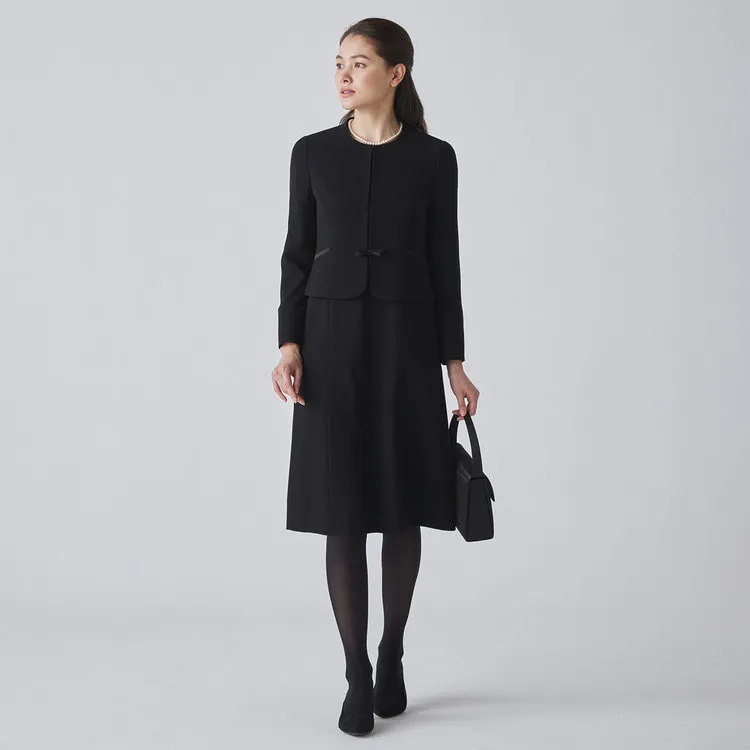 洗練された漆黒の深さや、体型変化に対応できる機能性、自宅で洗えるイージーケアなど、急な場面でも頼れる1着です。