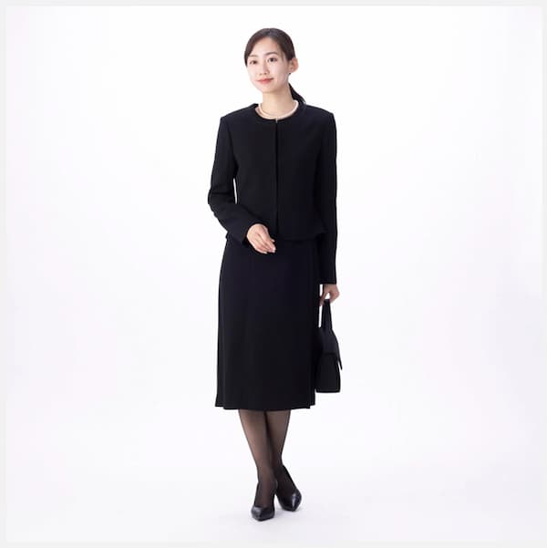 黒のストッキングで肌の露出を控え、全体の礼節を大切にする装いが基本です。