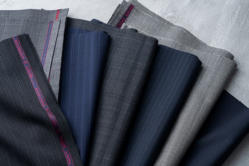 ウールやポリエステル混紡などの定番生地から、カジュアルで柔らかい質感の生地まで選択することが可能。