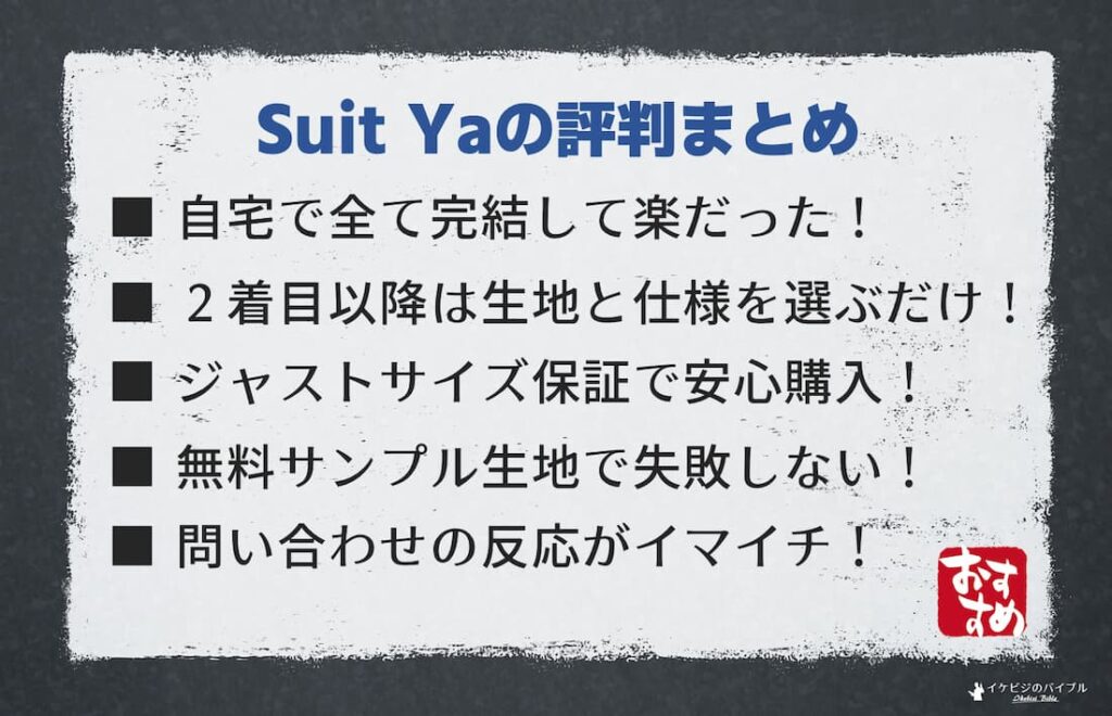 まとめ:SuitYaのオーダースーツはコスパが高く、サービスも充実と高評価!