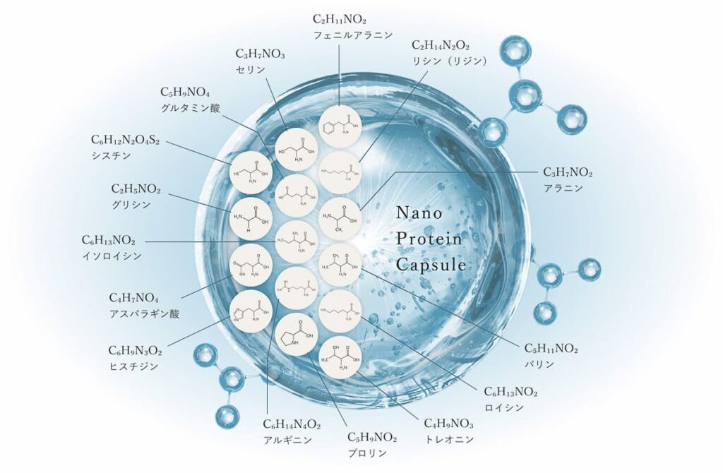 「ナノプロテインカプセル(TM)」は、肌の奥まで保湿成分を届けるために開発されたオーカー独自の技術。