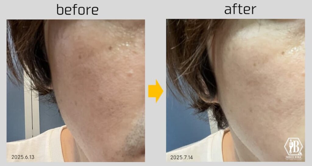 1週間後には、なんとなく顔全体が明るく見えて「肌、調子いいね」と言われたことも。