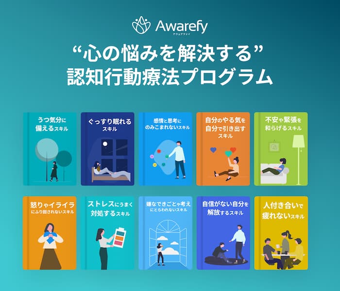 Awarefyは、早稲田大学との共同研究によって認知行動療法のアプローチを取り入れ、公認心理師が開発に関わっています。