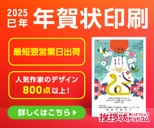ふみいろ![]() >>公式サイト | ・年賀状のデザイン数1065種類以上 ・あんしん再印刷保障 ・価格は業界最安値クラス ・宛名印刷無料 ・投函代行無料 ・日本全国どこでも送料無料 ・16時までのご注文なら翌営業日発送 ・70万件以上の出荷実績を誇る工場 |